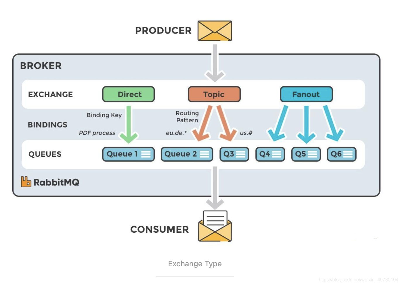 广播式交换器类型(Fanout): 该类交换器不分析所接收到消息中的 Routing Key,默认将消息转发到所有与该交换器绑定的队列中去。